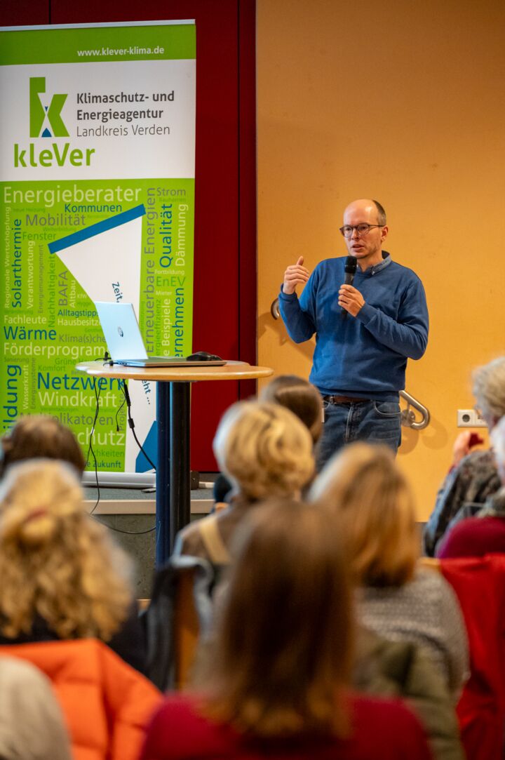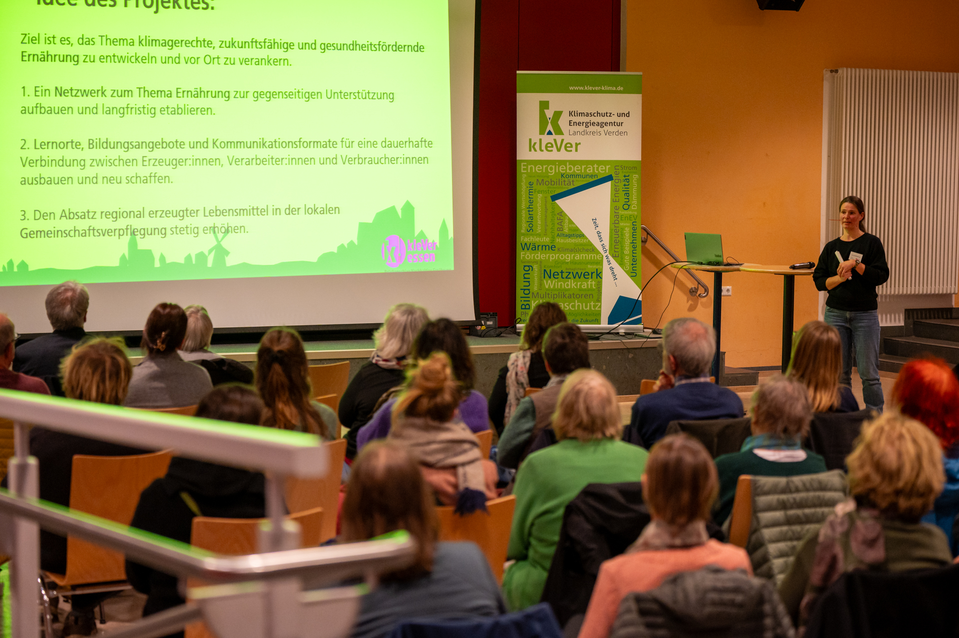 So leitete kleVer-Geschäftsführer Werner Reichmann nach dem Grußwort von Verdens Bürgermeister Lutz Brockmann, die gut besuchte Veranstaltung im Verdener Campus ein. Dass es bei der Ernährungswende unterschiedliche Sichtweisen und verschiedene Aktivitätsebenen gibt, bestätigte sich im Laufe des Abends immer wieder.