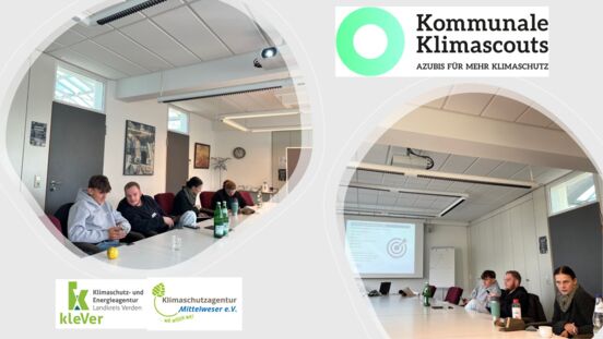 Auch dieses Jahr bietet die kleVer den kommunalen Azubis wieder die Möglichkeit, bei den "Kommunalen Klimascouts" mitzumachen. Anfang Oktober war es so weit und Azubis aus Oyten, Achim und dem Landkreis trafen sich im Rathaus in Achim zur „KlimaQuali“. Zwei intensive Schulungstage liegen hinter den Azubis. Inhaltlich ging es um die Grundlagen der Klimakrise, wie Klimaschutz in den Kommunen funktioniert und vor allem darum, welche Handlungsmöglichkeiten gegen die Erderwärmung es auf kommunaler Ebene gibt. Jetzt geht es an die Entwicklung einer eigenen Projektidee. Diese wird im Dezember präsentiert und dann im Frühling von den Azubis vorangetrieben.